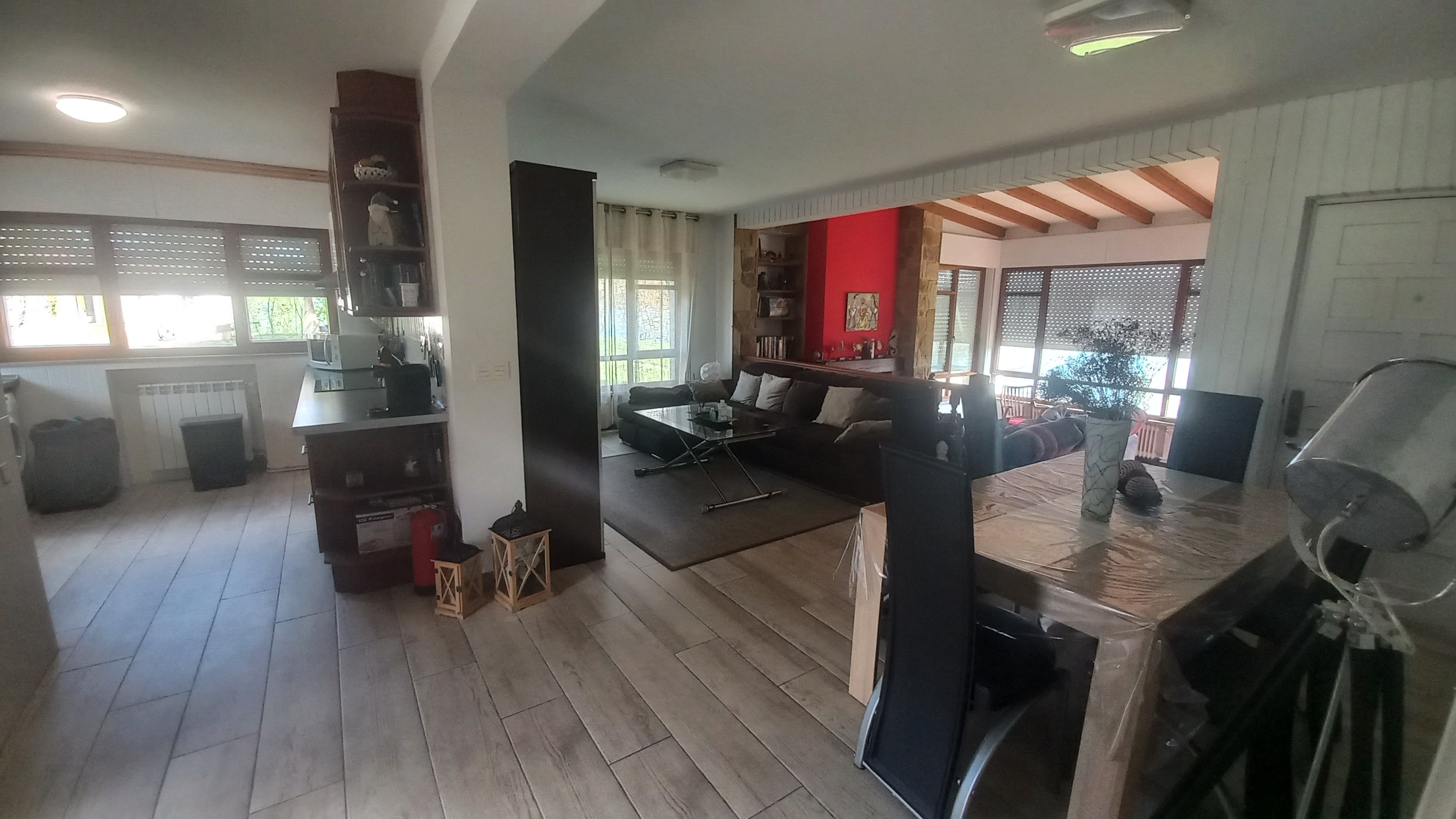 Vivienda con una superficie aproximada de 120m2., que se distribuye en hall de entrada, cocina totalmente amueblada y equipada y despensa, Salón-comedor dividido en 2 ambientes, en la parte superior zona estar y zona comedor con salida al porche y jardín, en la parte inferior salón con chimenea y preciosas vistas a La Ría, 2 dormitorios con empotrados, baño completo con plato de ducha y 1 dormitorio tipo suite con baño incorporado y armario empotrado. Calefacción de Gasoil. Porche cubierto con mesa comedor e impresionantes vistas a La Ría y acceso al jardín y piscina.