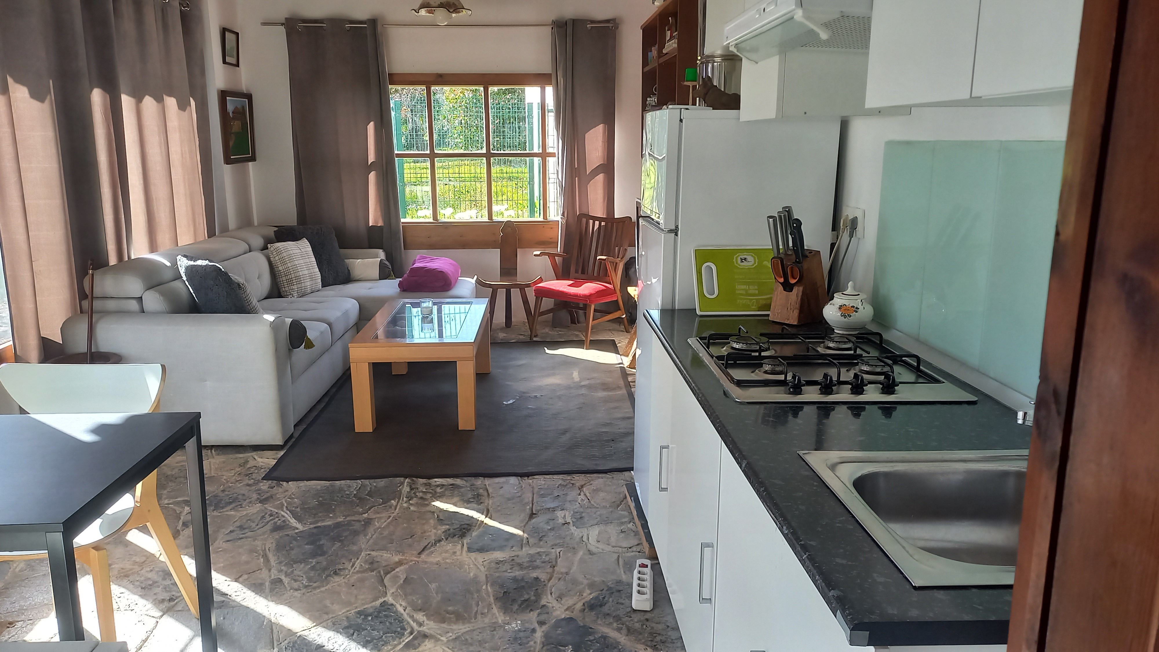 Acogedora Casa de invitados con una supericie aproximada de 35m2., con cuarto de aperos integrado en la construcción y, distribuido en salón con chimenea-comedor-cocina y 1 dormitorio.
