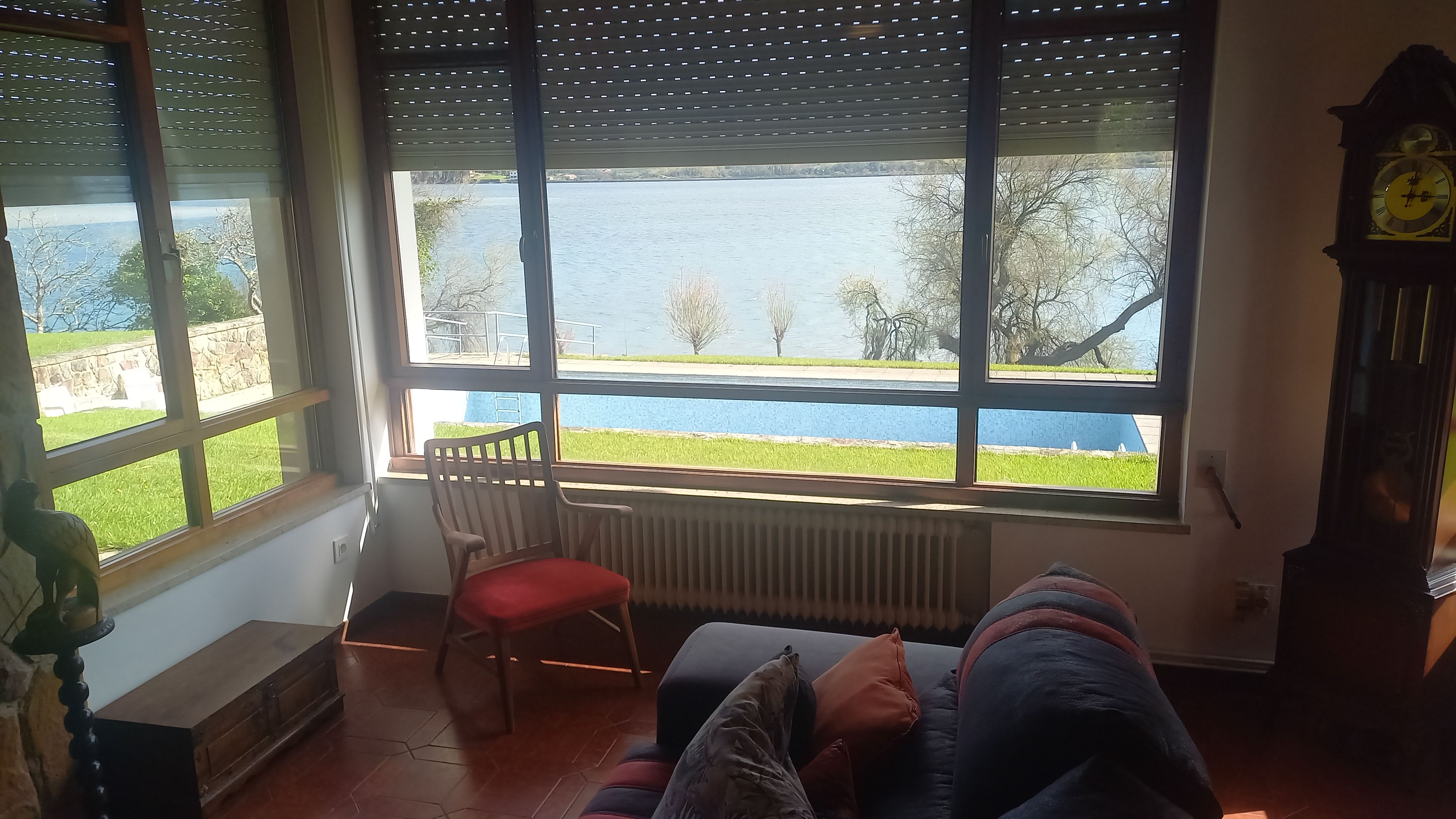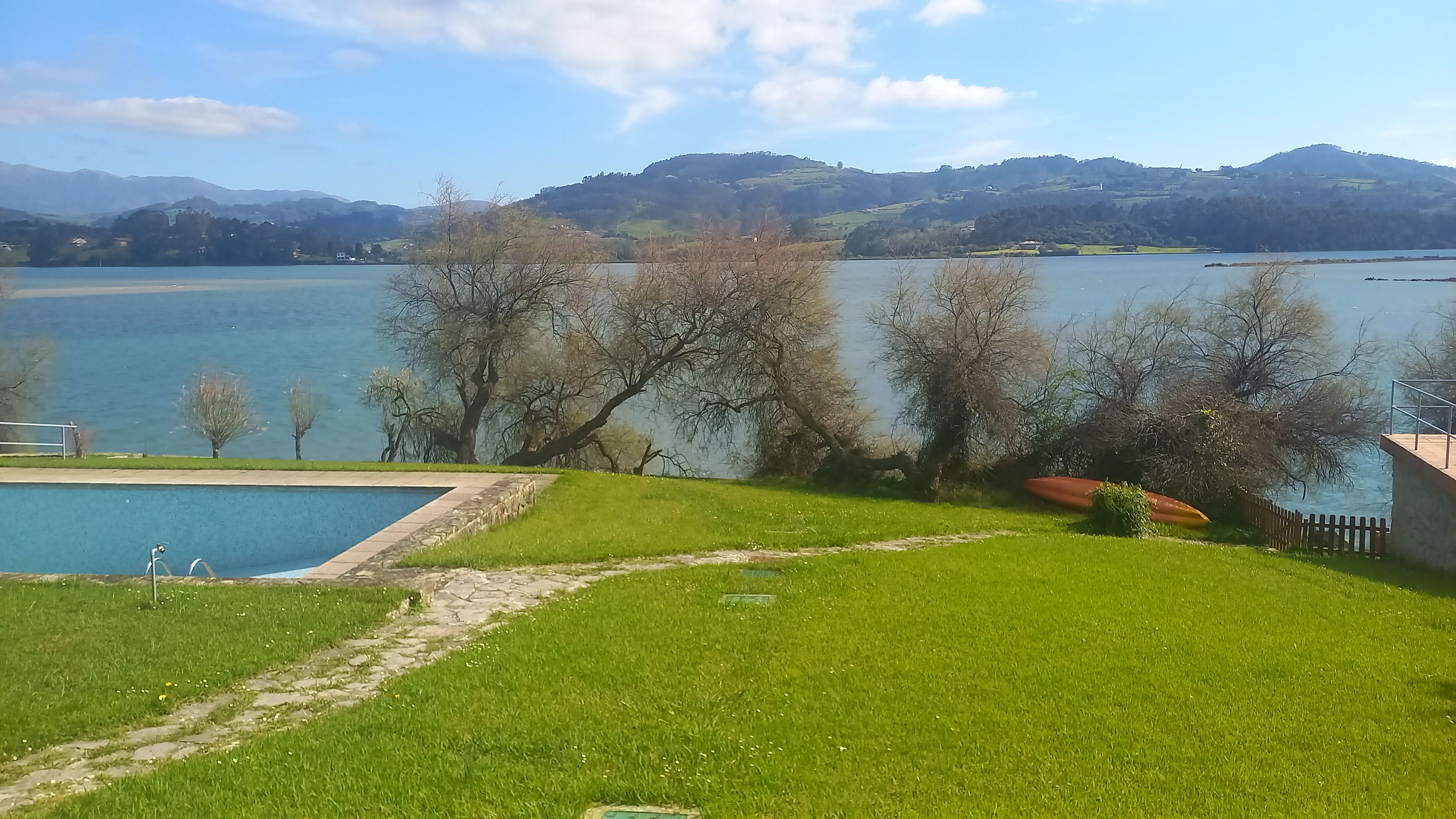 Piscina. Solarium bajo el cual hay un hangar para guardería de embarcaciones, que da directamente a un embarcadero a pie de Ría.