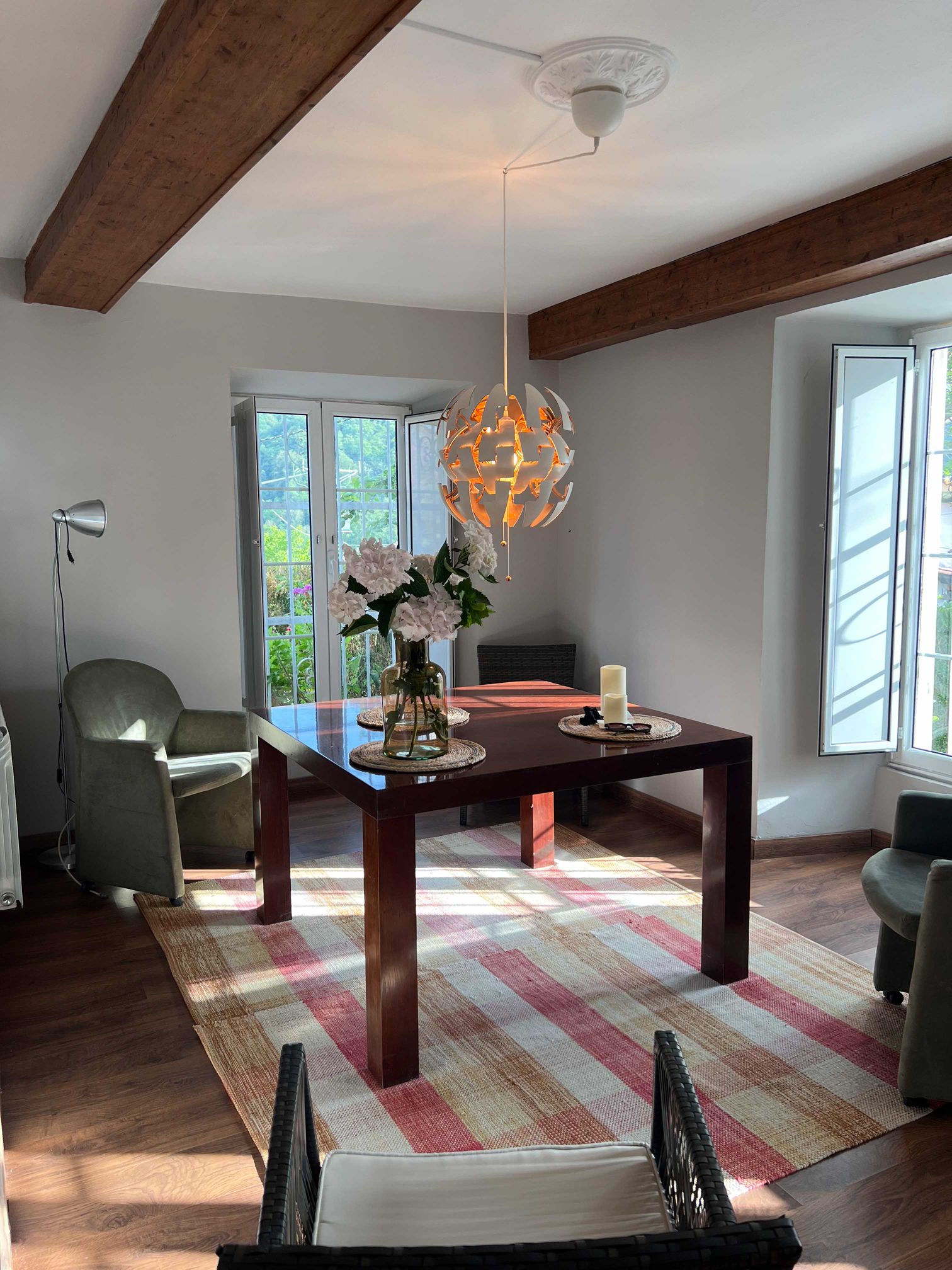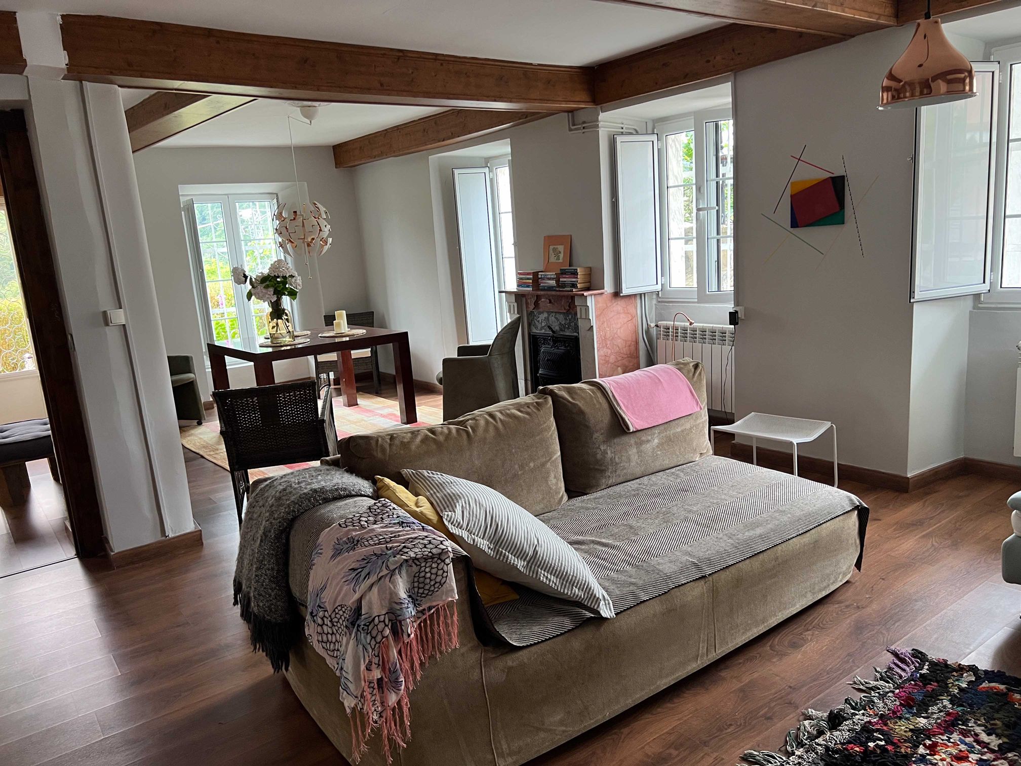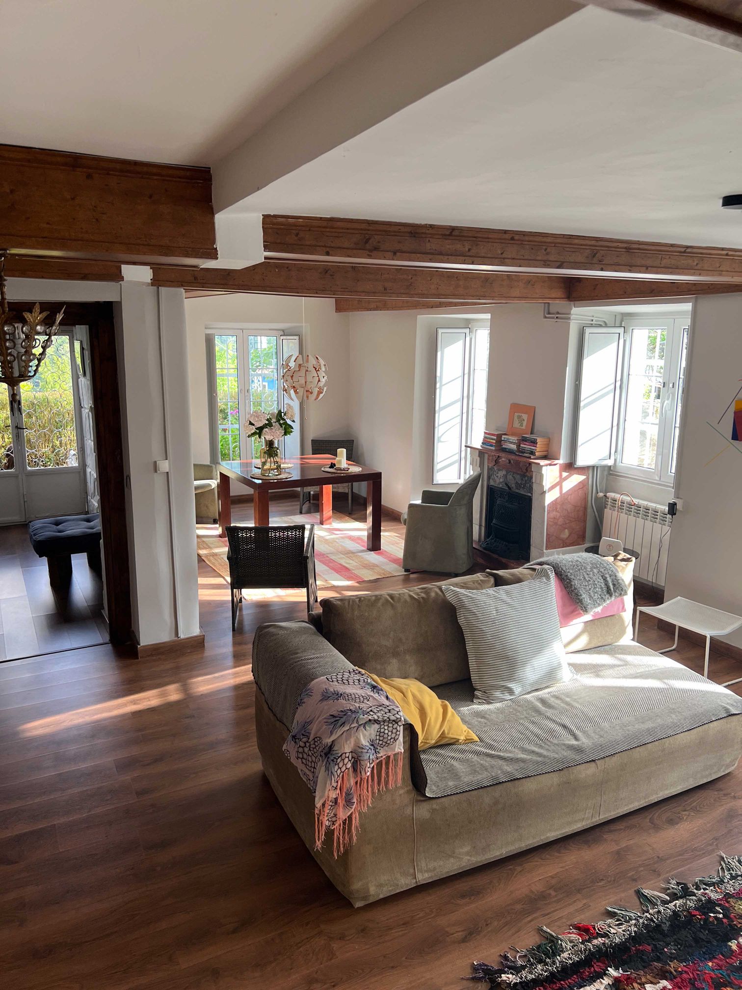 Este apartamento se comunica con la vivienda principal, que en su planta baja se distribuye: estancia con chimenea y salida al jardín que, en caso de necesidad, se podría convertir en dormitorio, gran salón-comedor con chimenra y con diferentes ambientes, así como varias salidas al jardín, amplia cocina independiente con zona comedor y 1 baño. En la planta primera: 5 dormitorios, 2 de ellos con salida a balcón y otro con salida a galería.