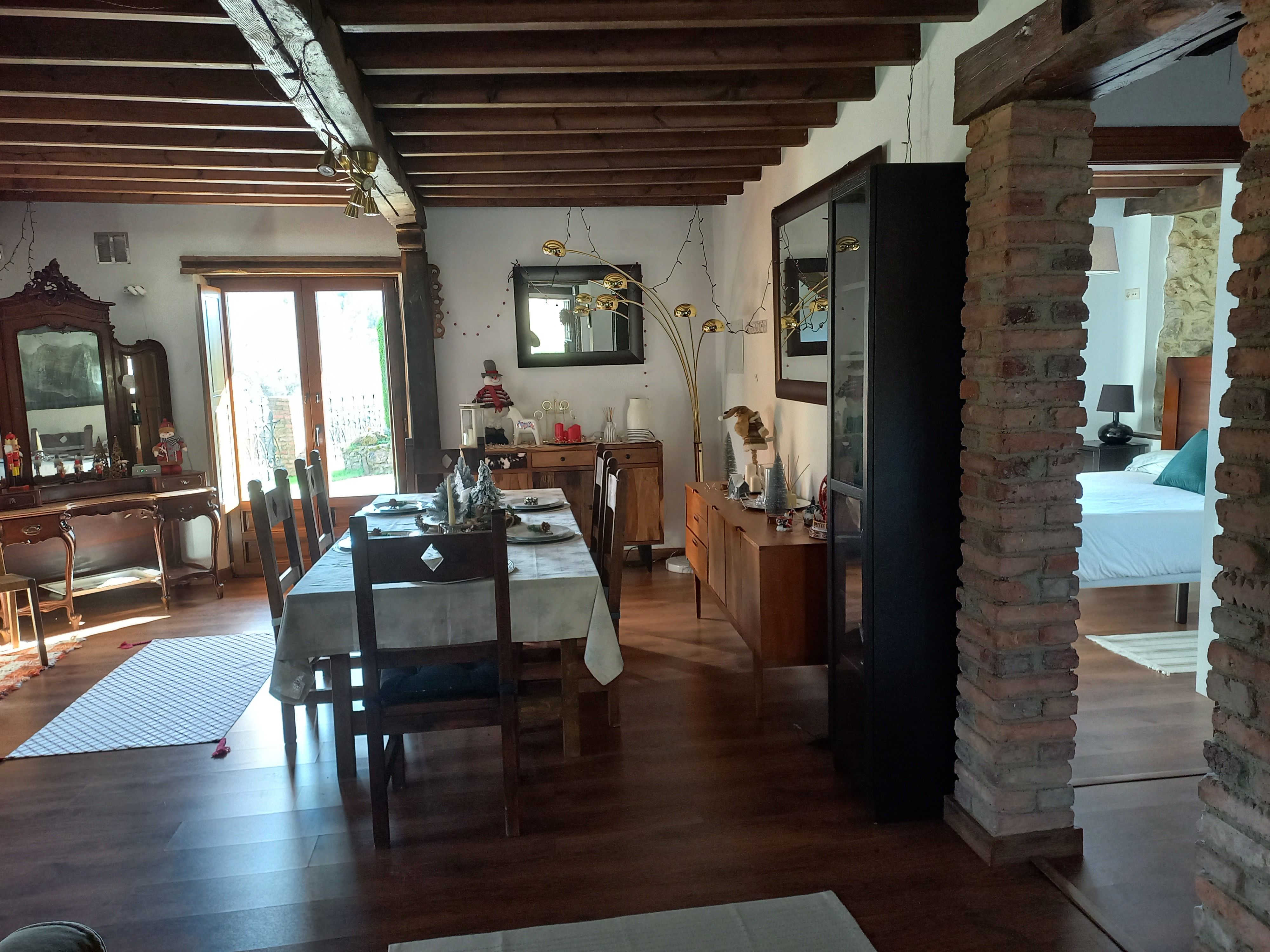 Casona de piedra rehabilitada de 2 plantas, con una superficie total aproximada de 310m2., distribuida en su Planta Baja: entrada que da a dos zonas de estar, una de ellas con chimenea, 1 baño, despensa, cuarto de lavado, cocina independiente totalmente amueblada y equipada, 1 dormitorio tipo suite con baño incorporado, y un amplio comedor con salida a la zona de Barbacoa y porche; en su Planta Alta: según desembocamos de la escalera interior zona abierta de estudio y biblioteca con salida a gran corredor de madera, 1 dormitorio tipo suite con baño y amplio vestidor con salida al corredor, 1 dormitorio tipo suite con baño incorporado y con acceso al exterior independiente, 2 dormitorios y 1 baño.